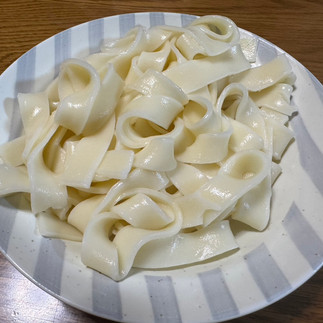 さらに今回は、製麺の新規開発でお世話になっている〇〇〇〇様のほうとう麺を合わせてみることに! 思ったよりもカレーと麺の相性が抜群で、もちもちとした食感と厚みがちょうど良く、しっかりとカレーの旨みを受け止めてくれました✨